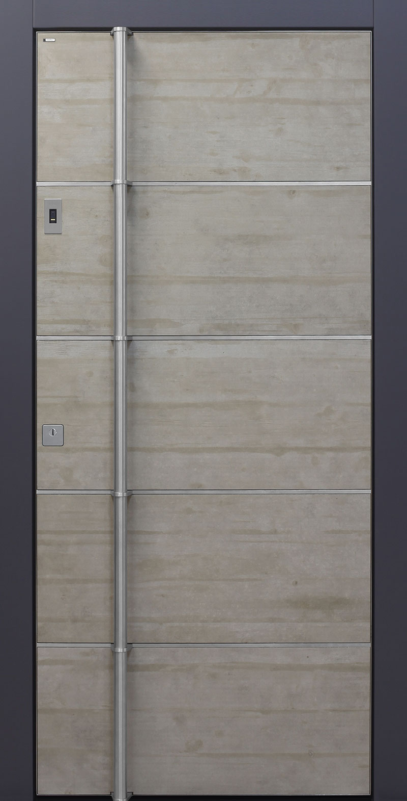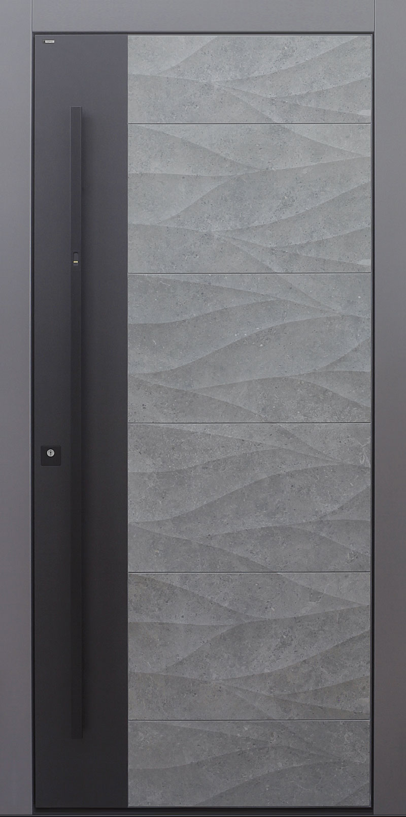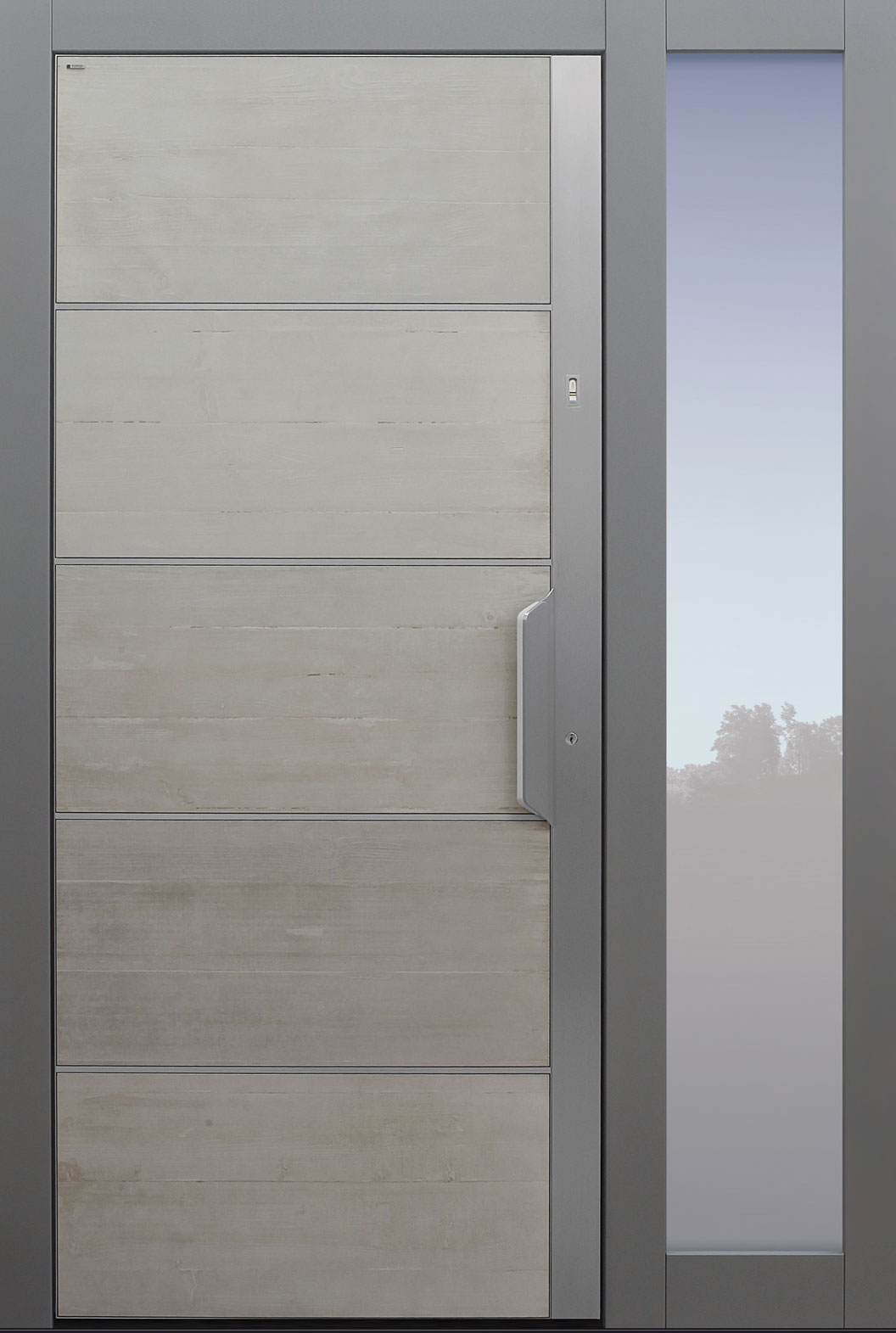 Faserverstärkte Betonplatten garantieren eine absolut wartungsfreie und extrem widerstandsfähige Oberfläche. Jede Betonoberfläche ist ein Unikat und wird in eigens angefertigten, nur einmal verwendeten, Formen abgegossen – daher gleicht kein Modell dem anderen! Dabei auftretende Farbunterschiede oder Strukturabweichungen geben der Tür ihren besonderen Charakter.