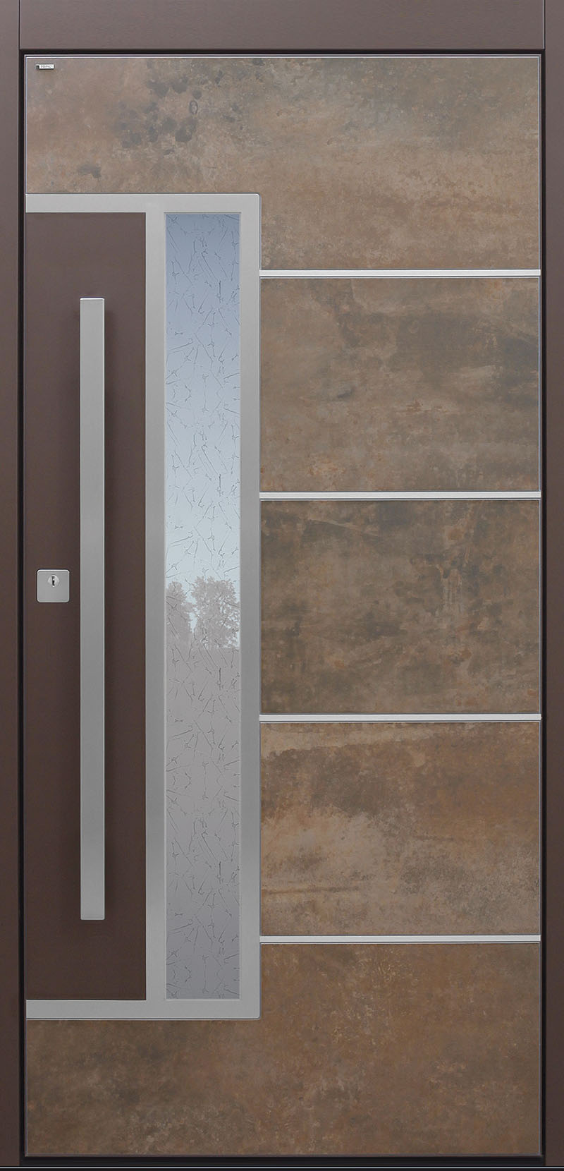 Eine neu entwickelte Exterior-Oberfläche ermöglicht TOPIC eine Fülle an Materialitäten, mit einer Vielzahl von Designs. Häufig nachgefragte Bronze- und Fels-Optiken, die es so noch nicht zu sehen gab, können so vergleichsweise kostengünstig realisiert werden. Die neue optische Freiheit führt zu keinerlei Einbußen bei der Funktionalität: Wetter und die üblichen mechanischen Einflüsse können dem extrem stabilen Material nichts anhaben.