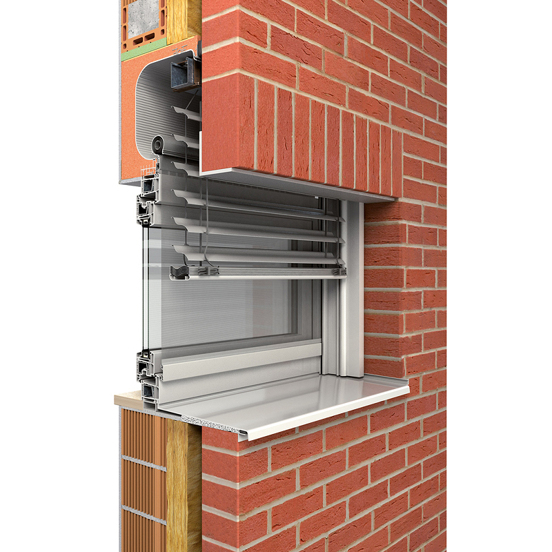 Die Raffstorensysteme werden direkt auf das Fenster montiert und bilden somit eine perfekte Einheit. Mit PURO.XRK-RS hat ROMA ein System speziell für Klinkerbauweise entwickelt.