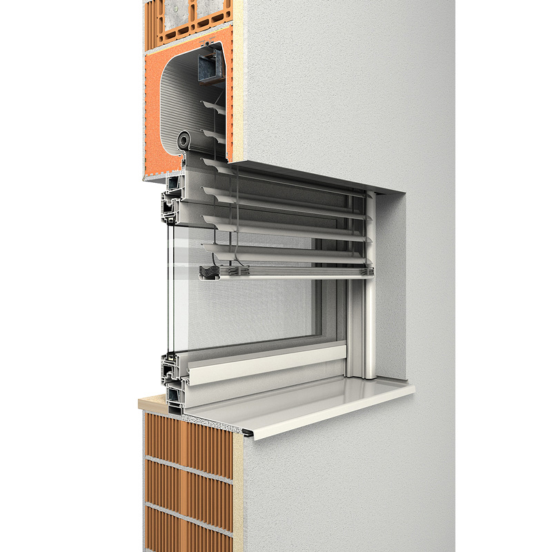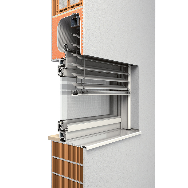 ROMA Aufsatzraffstoren finden gleichermaßen im Privat- und Objektbau als auch im Neubau oder in der Sanierung Verwendung. Fenster und Aufsatzraffstoren bilden eine Einheit, denn die Raffstoren werden direkt auf das Fenster montiert und in einem Arbeitsgang eingesetzt. Auf diese Weise verschwinden sie später praktisch unsichtbar in der Fassade. Die Sonnenschutzsysteme passen auf jeden Fenstertyp und schließen perfekt ab. Zugluft und damit Wärmeenergieverlust sind weitestgehend ausgeschlossen. Die hochwertigen Kunststoffbauteile sind witterungs- und UV-beständig.